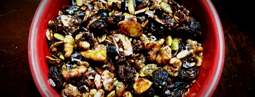I always try and find ways to eat less process foods and take the time to make my own if at all possible. Store bought granola for instance, has to include preservatives and sometimes, coloring; as well as the use of natural flavors, which can be hidden inflammatory substances. This recipe is an inspiration from an IIN classmate and friend. I have made a few changes, but the original recipe can be found at www. mediterawnean@gmail.com, Elisabet Corominas, from her Raw Food Cooking Class. Check her out for more awesome recipes.